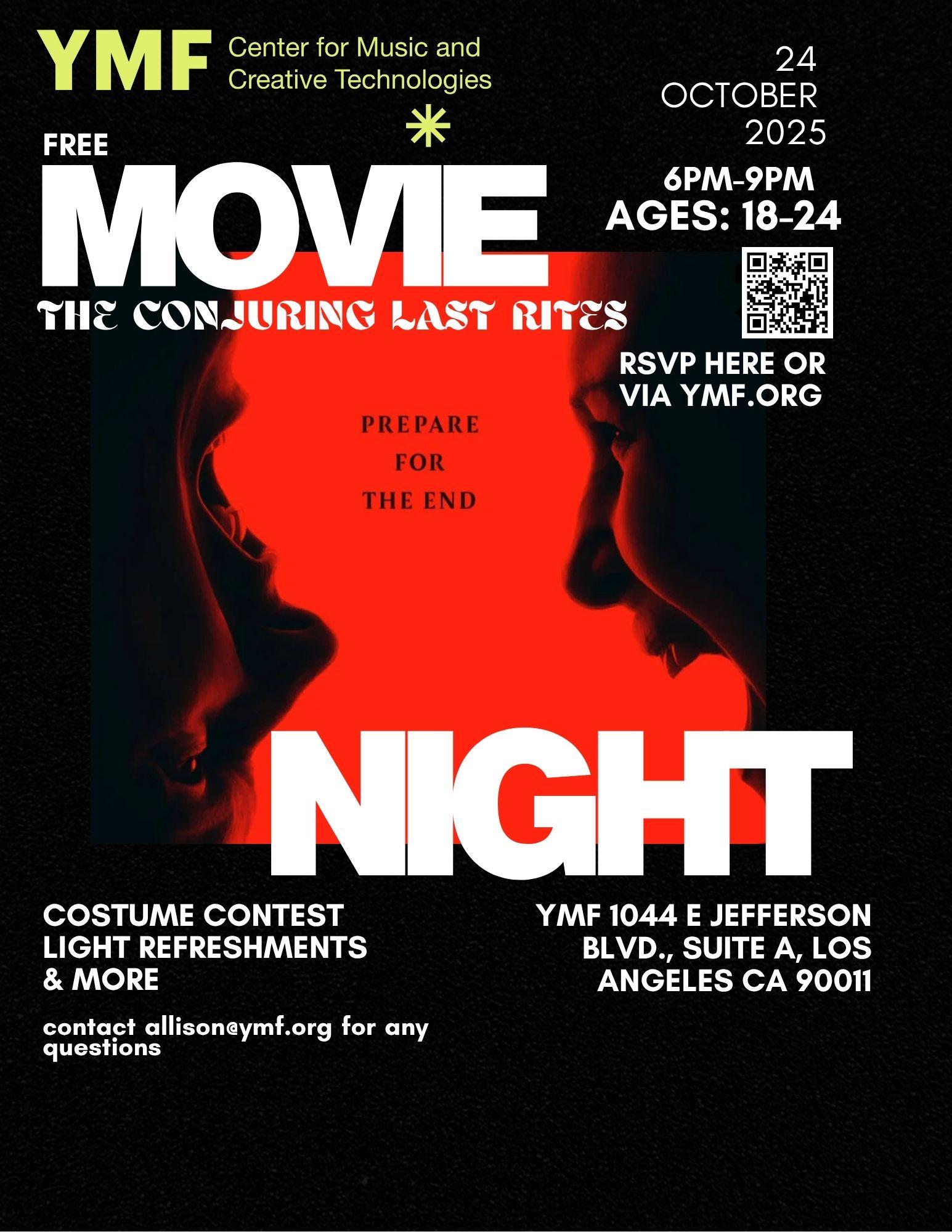 The Movie Night will be on Friday, October 24th at the YMF Center for Music & Creative Technologies from 6pm-9pm. Please arrive accordingly. Rideshare encouraged.